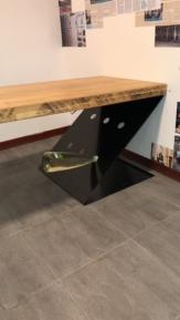 Voor mijn eerste model zoals hier boven te zien is heb ik gebruik gemaakt van hergebruikte onderdelen zoals een massief eikenhouten tafelblad van een oud tafeltje, ook heb ik de HEA100 balk van een stuk restmateriaal van een ander project genomen.